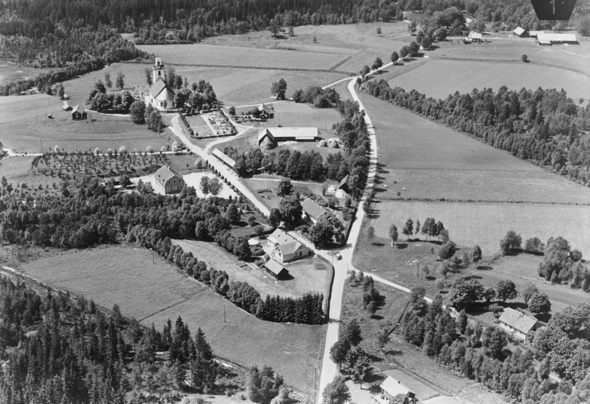Flygfoto över Södra Hestra kyrka i Broaryd, Gislaveds kommun. Nr D 1867