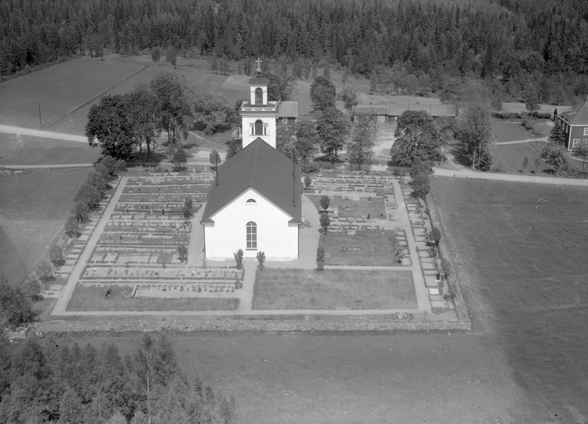 Flygfoto över Hults kyrka i Eksjö kommun. Nr K 298.