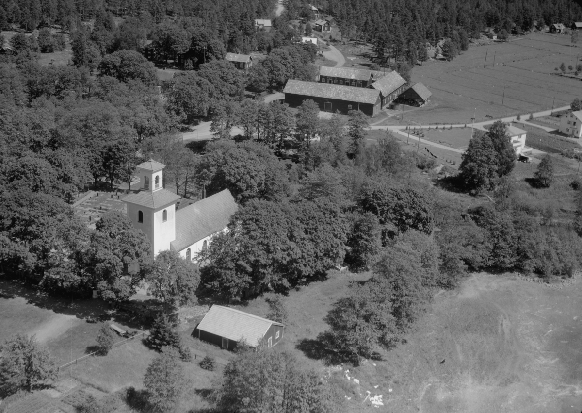 Flygfoto över Ramkvilla kyrka i Vetlanda kommun. Nr. K. 138
