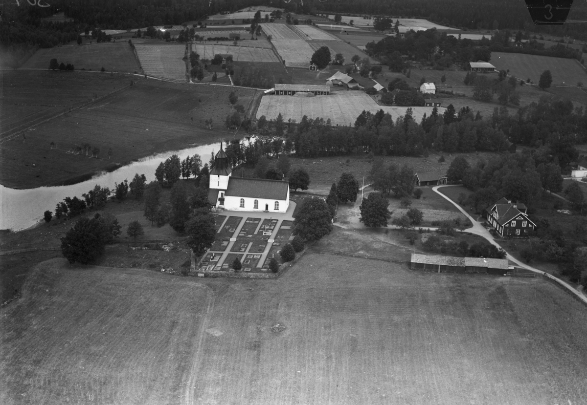 Flygfoto över Bäckseda kyrka i Vetlanda kommun. Nr C1840