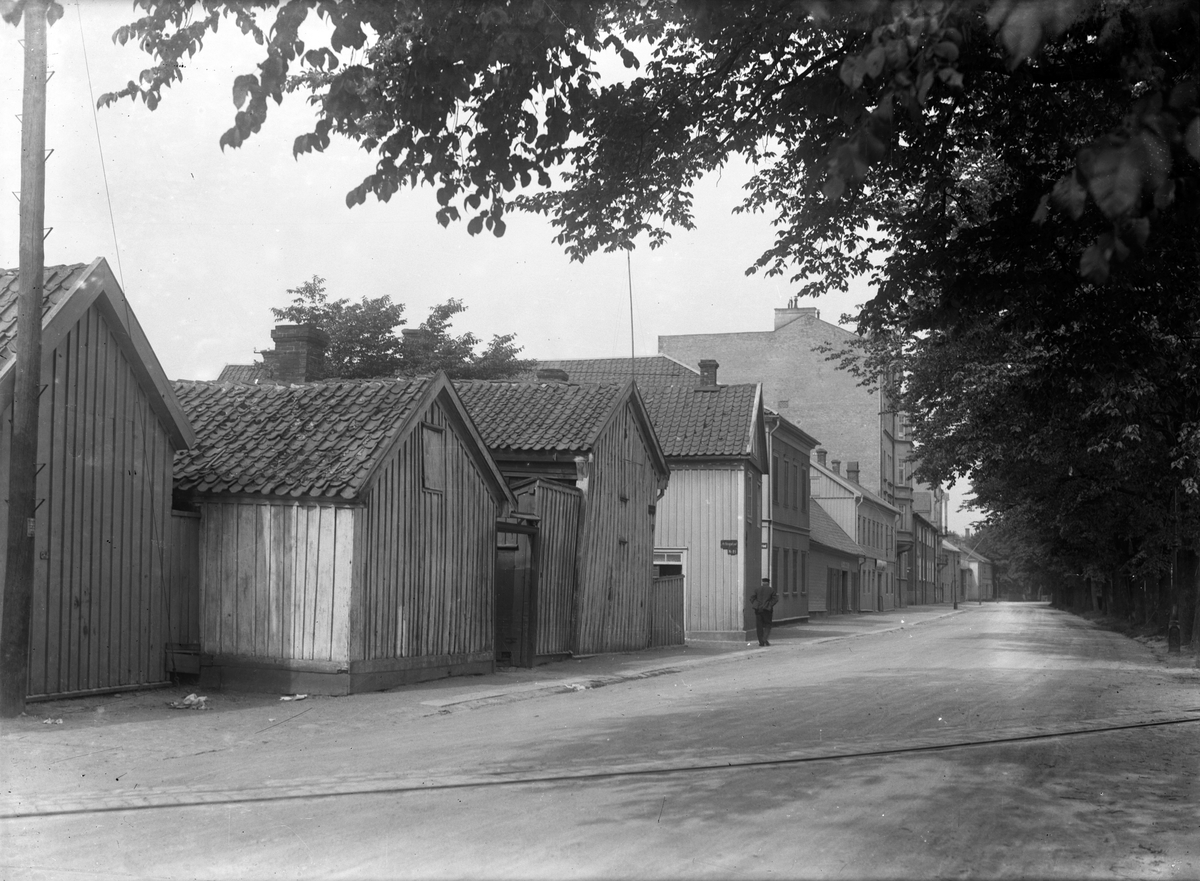 Båtsmansgränd i Jönköping. Spåret är Gripenbergsbanans anslutning till omlastningsstationen Strand.