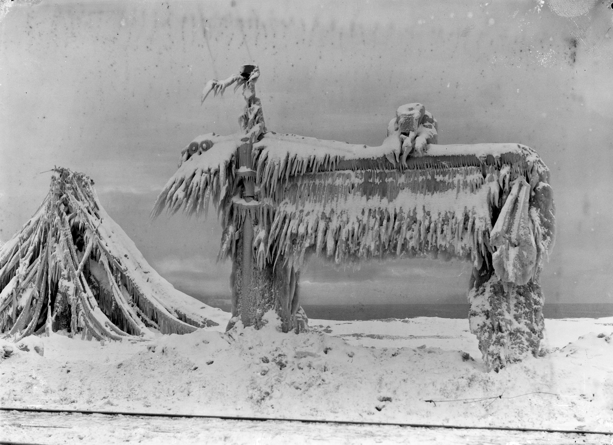 I februari 1928 drog stormen in från Vättern och täckte strandpromenaden och föremål utmed Norra Strandgatan i Jönköping med is.