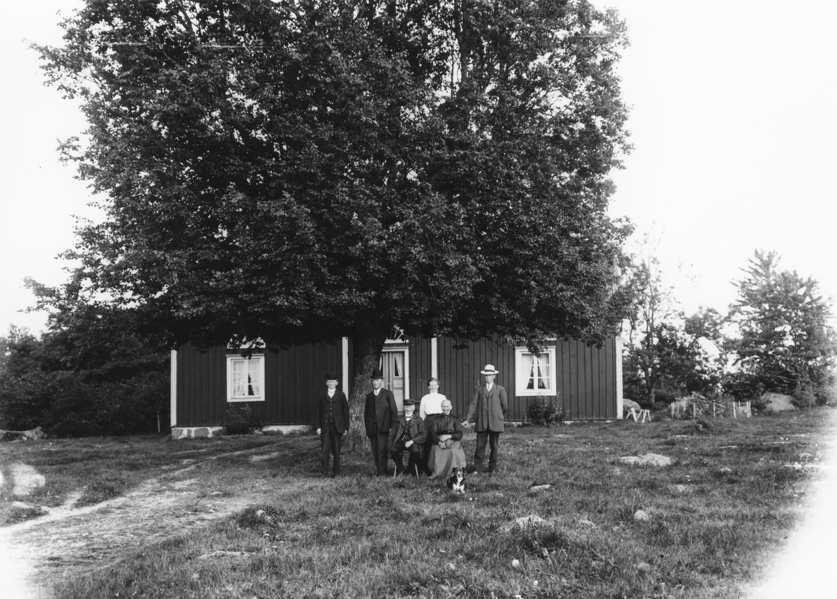 En familj framför Boxgården i Ökna.