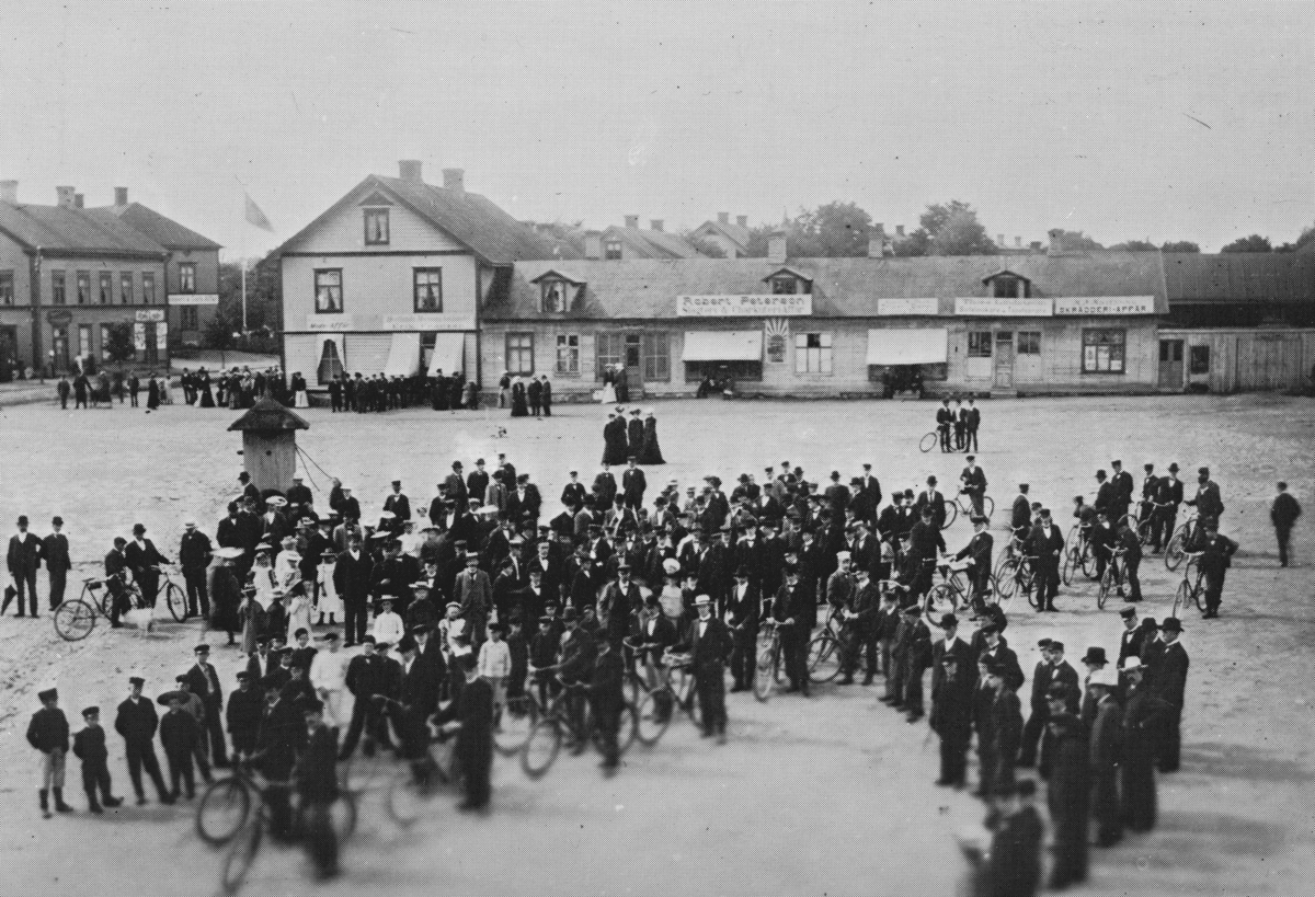 Vetlanda torg med den berömda brandpumpen.