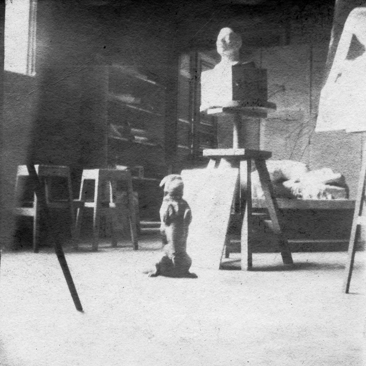 En tax "sitter vackert" i en ateljé.