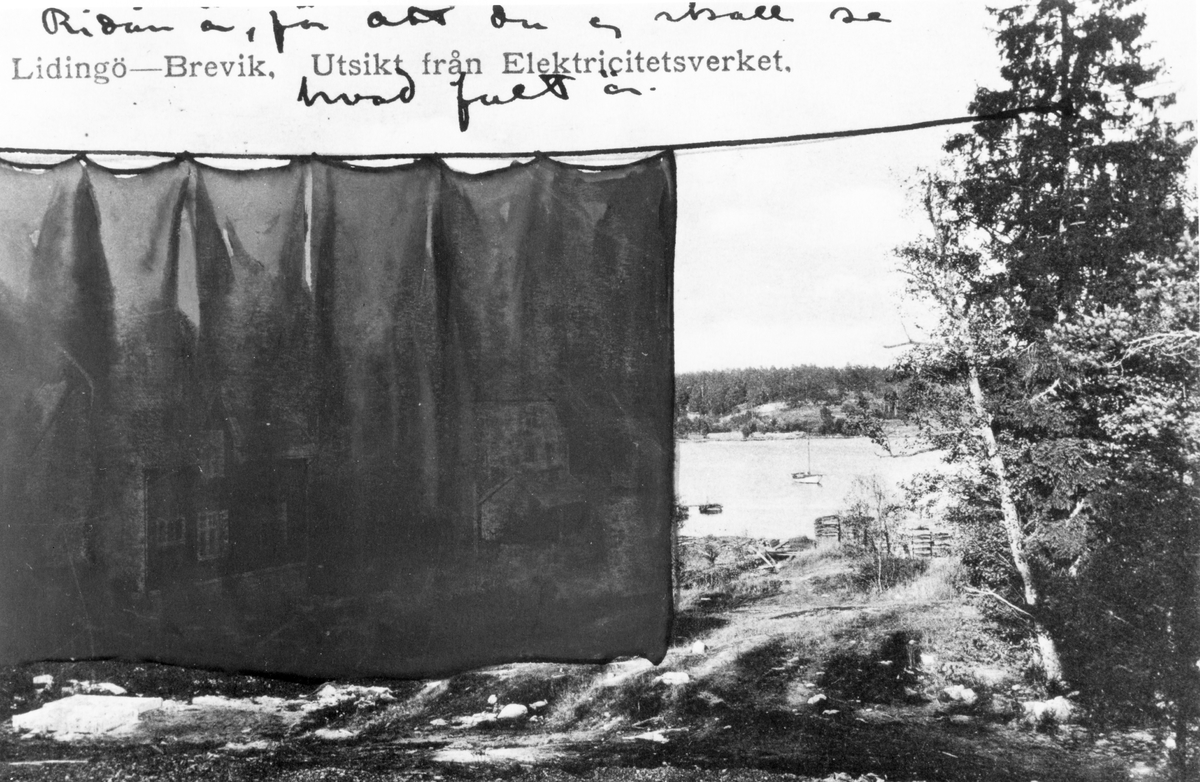 På ett avfotograferat vykort från Lidingö i Stockholm, har John Bauer ritat en ridå framför bostadshuset. Vid den befintliga texten "Lidingö - Brevik. Utsikt från Elektricitetsverket" är tillskrivet: "Ridån är för att du ej skall se hvad fult är."