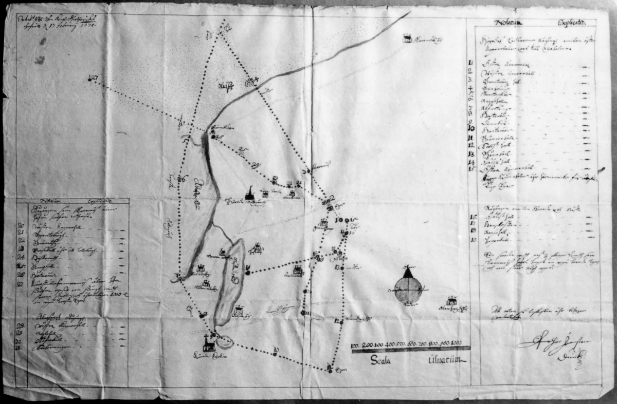 Kopia av en del av kartan över Kärda socken, upprättad av Kongl Göra hovrätt 1671-02-17.