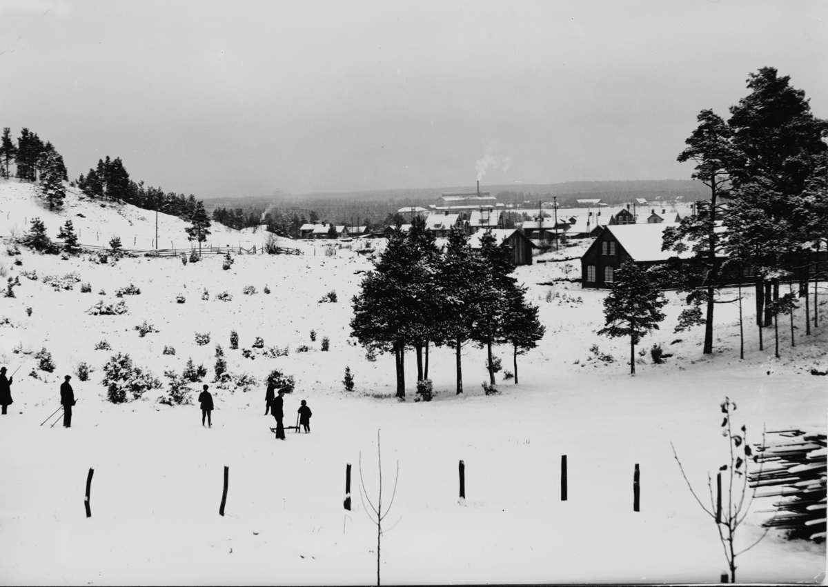 Några människor åker skidor och spark på Mosslelund i Värnamo.