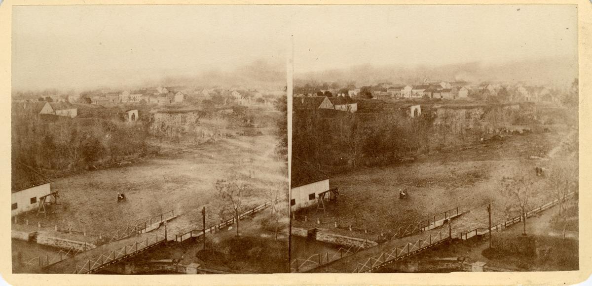 Vy över vallområdet vid Jönköpings fästning, Vindbron och Våghuset.