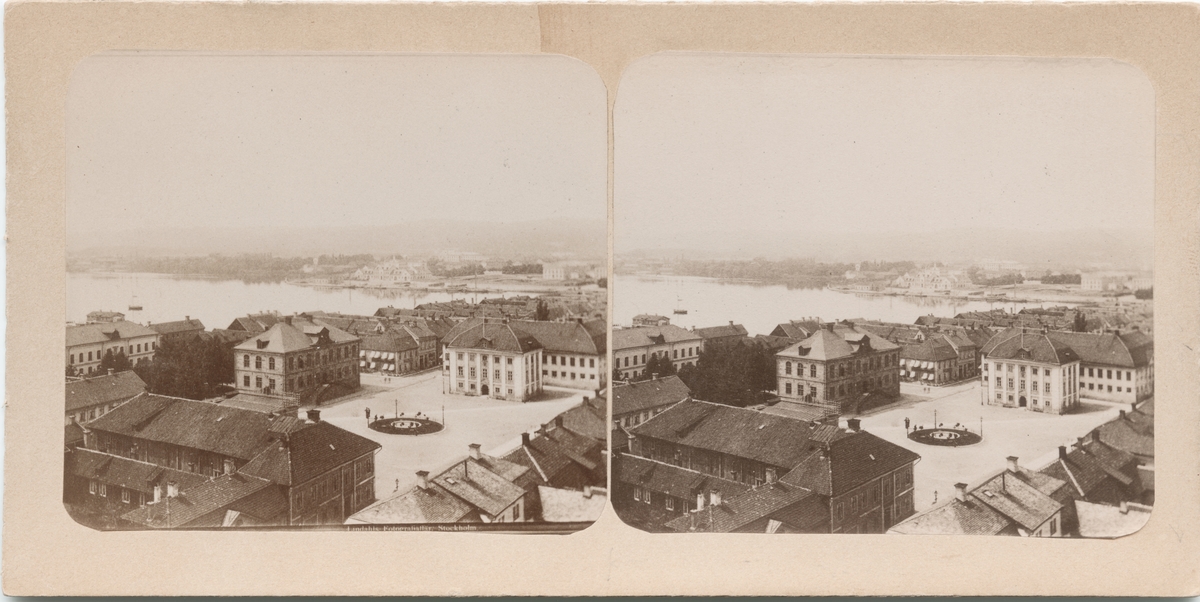 Vy från Kristinakyrkans torn över Jönköping med Hovrättstorget i mitten.