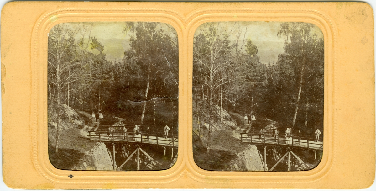 Bron över dalgången nedanför Jönköpings vattenlednings stora reservoar i Mariebo.