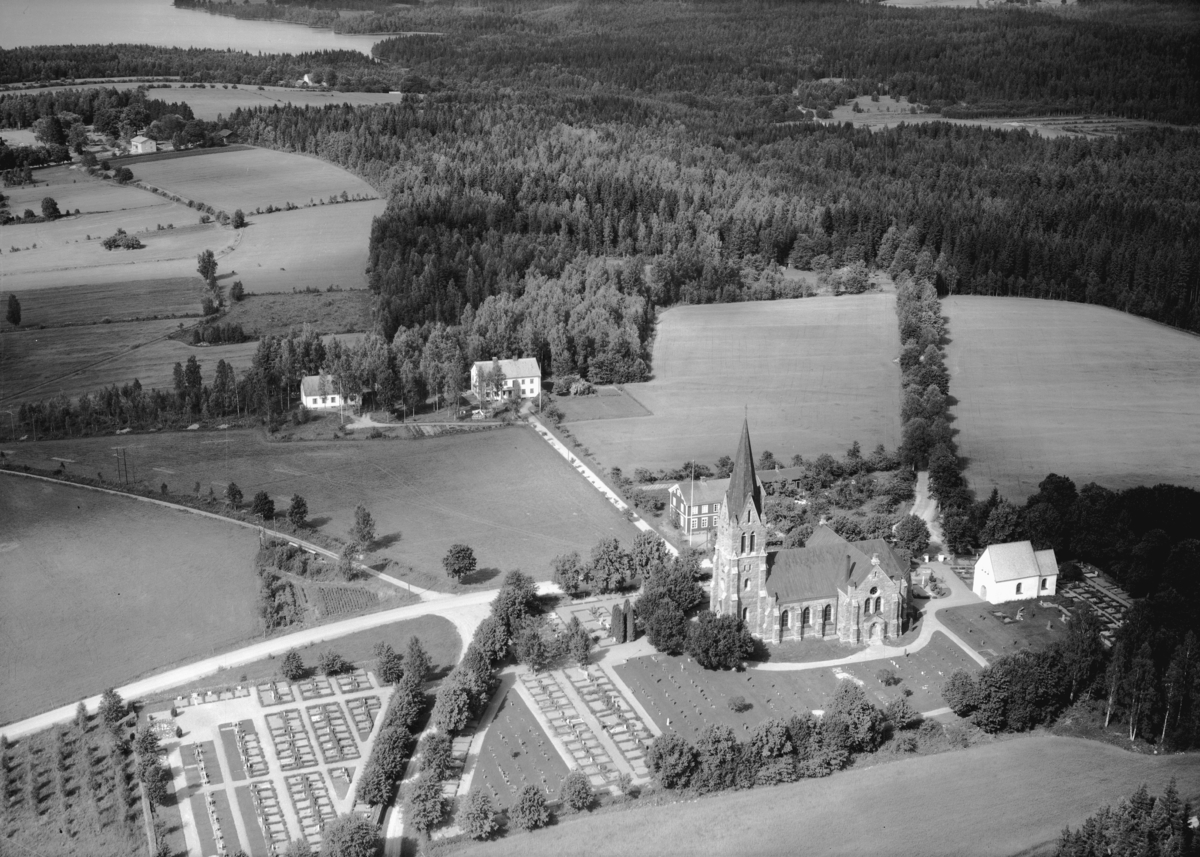 Flygfoto över Norra Solberga kyrka i Nässjö kommun, Jönköpings län. 1191/1962