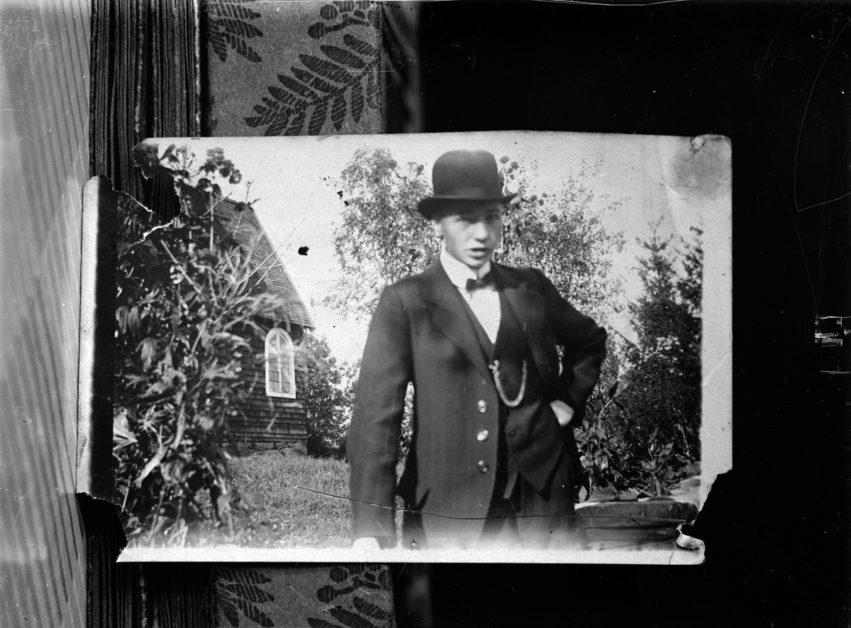 Avfotograferad bild på Gustav Andersson framför en kyrka.