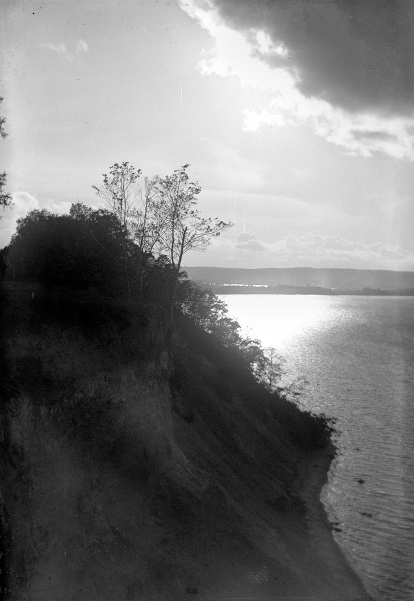 Solen glittrar i Vätterns vatten med sandbankarna vid Rosenlund i förgrunden.