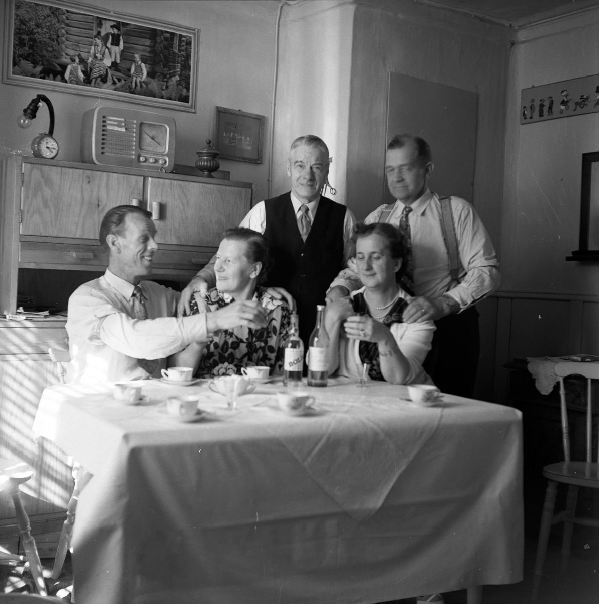 Några människor har samlats runt bordet hos Ruben Gustavsson, Kyrkogatan 24 i Jönköping.