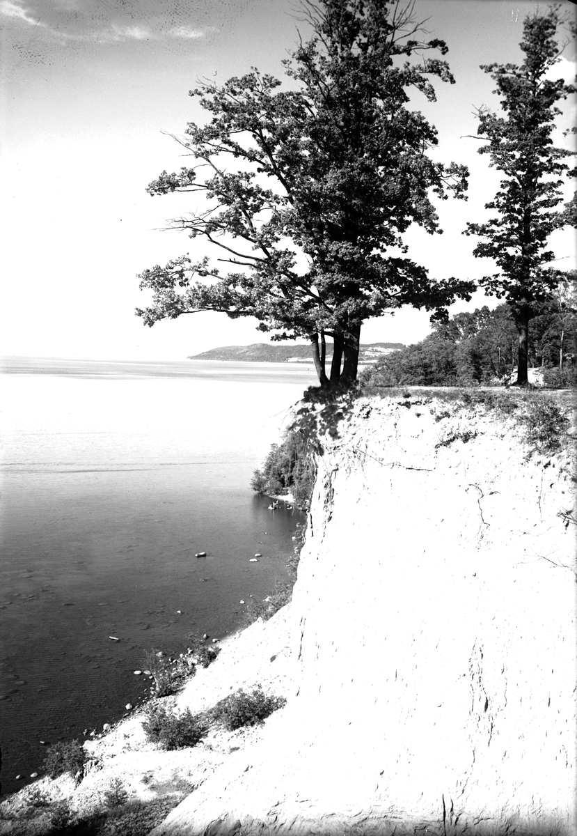 Ett träd växer vid kanten av sandbankarna vid Vättern i Jönköping.