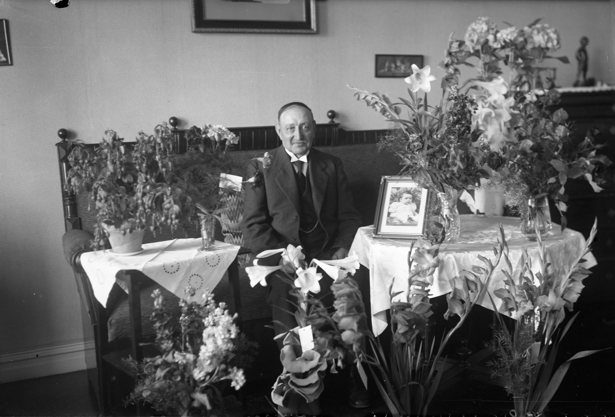 Högtidsdagen firas. Blommor och lyckönskningar är arrangerade runt omkring.