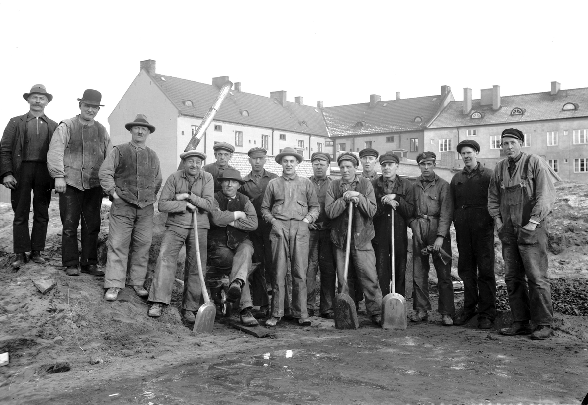 En grupp arbetare vid ett bostadsområde i Jönköping.