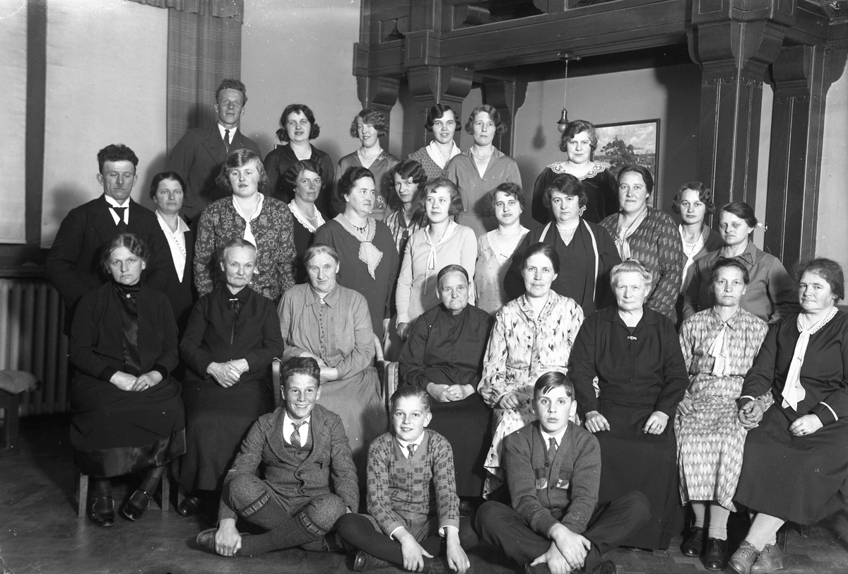 Kvinnor och män i en samlingslokal.