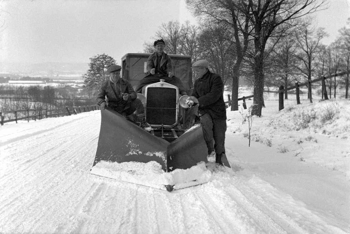 Snösvängen på en väg utanför Jönköping. Från vänster 1. Kurt Vinberg, 2. Sven Andersson.