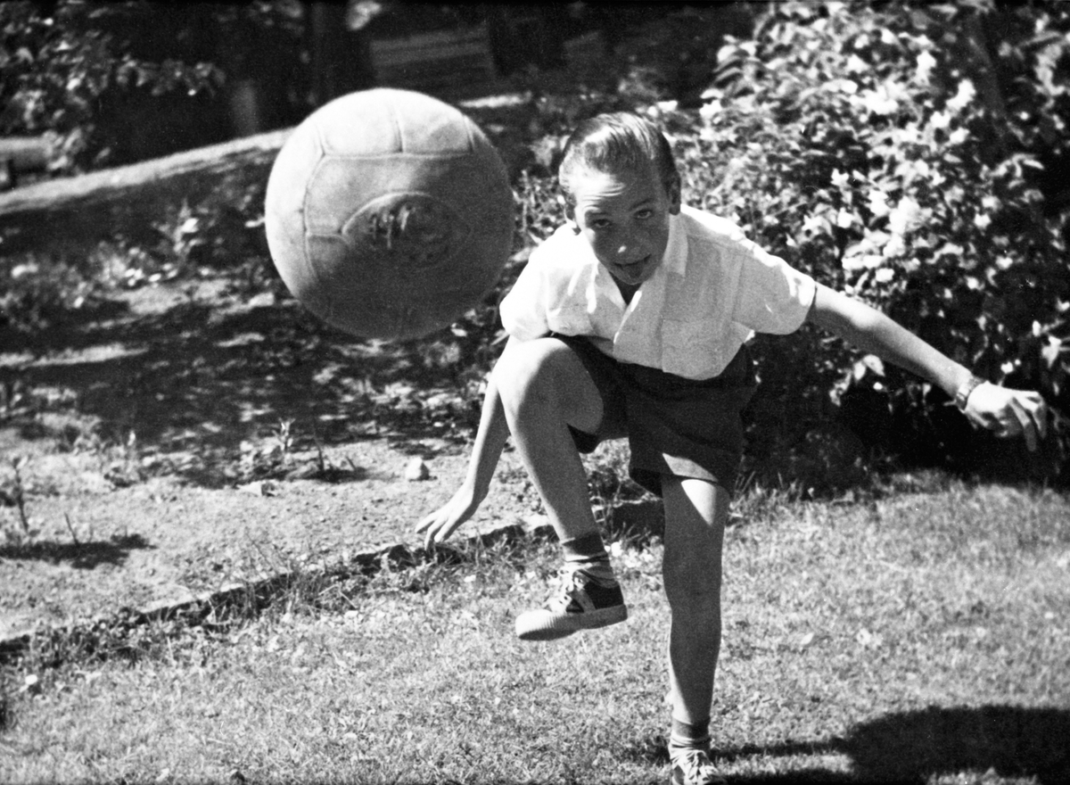 En pojke spelar fotboll någonstans i Jönköping.