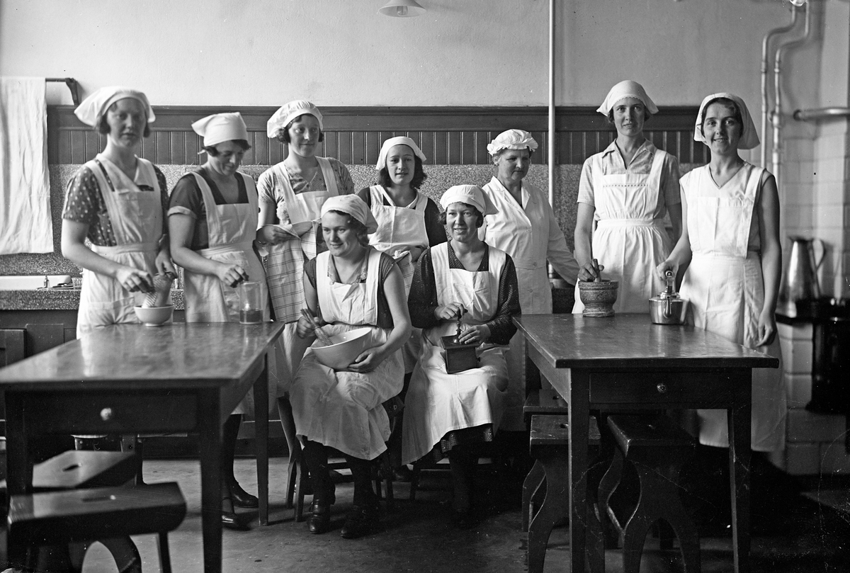 En grupp unga kvinnor i ett skolkök i Jönköping.