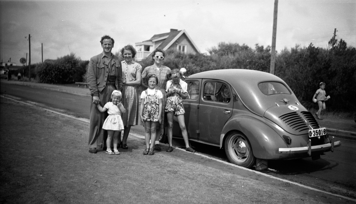 En familj i Jönköping vid sin bil, en Renault.