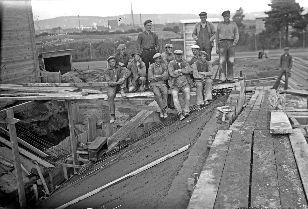 En grupp arbetare på en byggarbetsplats i Jönköping.