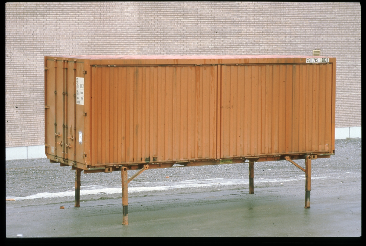 Godscontainer på stödben. Statens Järnvägar, SJ 715 10031.