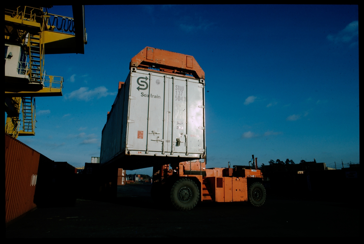 Titel: Lastning med containertruck.