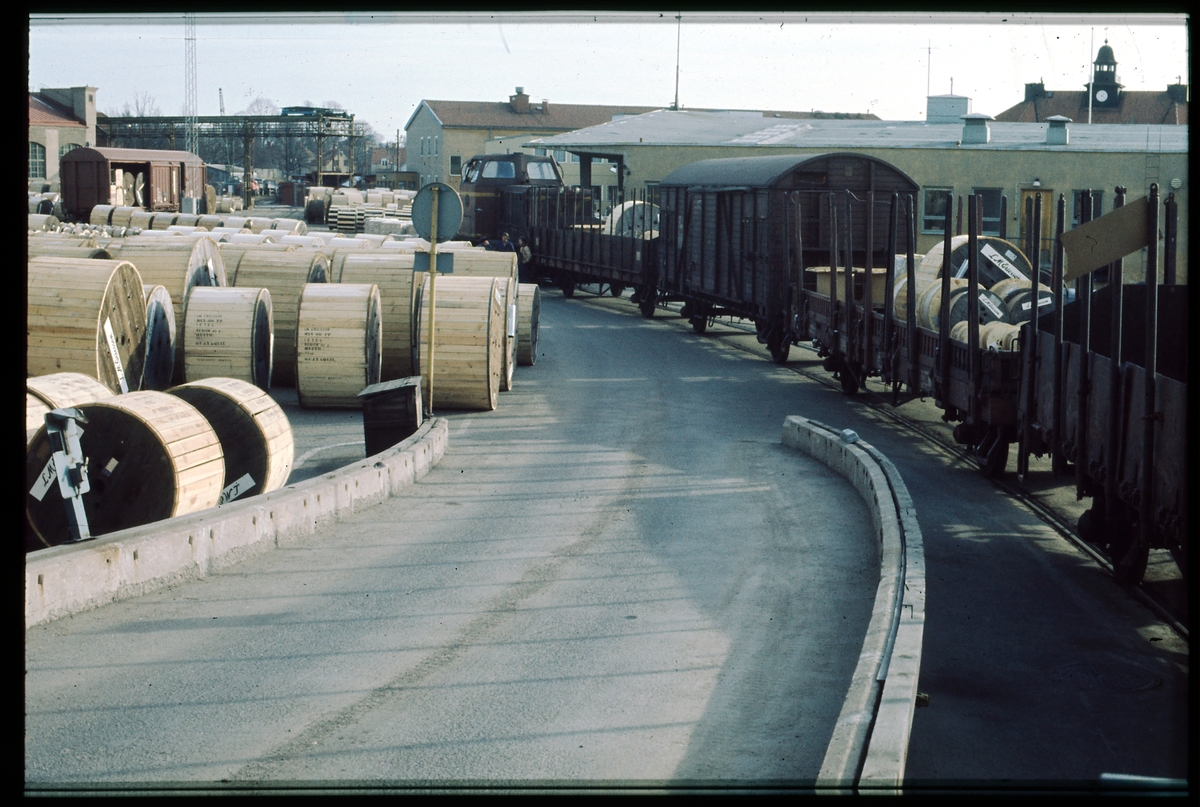 Lokomotor med godståg lastat med gods från LM Ericsson.