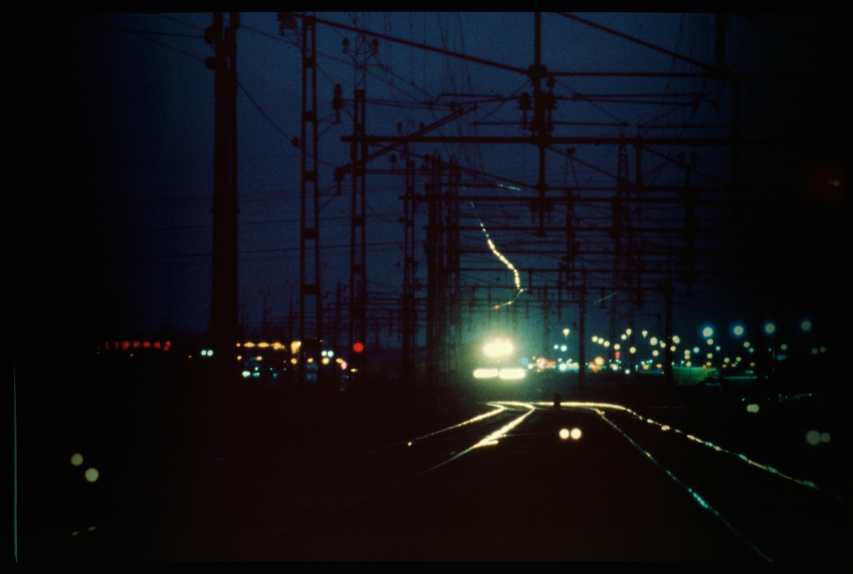 Nattbild av bangård.