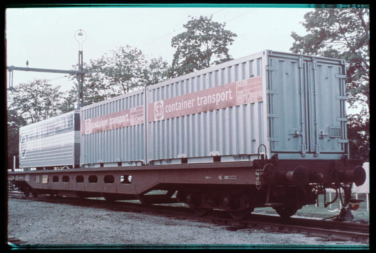 Statens Järnvägar, SJ containervagn lastad med containrar.