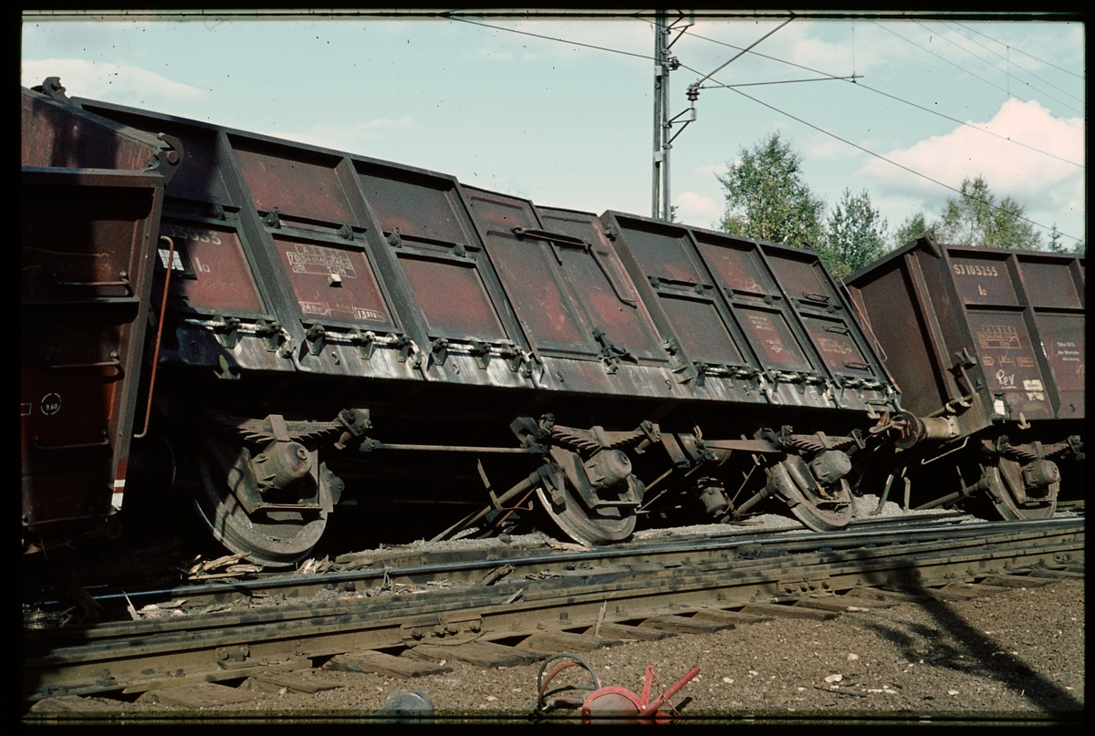 Urspårning av godsvagnar, däribland SJ La 103255. Statens Järnvägar.