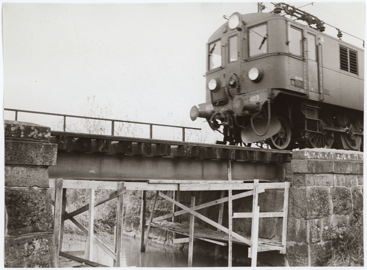 Trafikaktiebolaget Grängesberg - Oxelösunds Järnvägar, TGOJ Ma 403 vid ett brobyte.