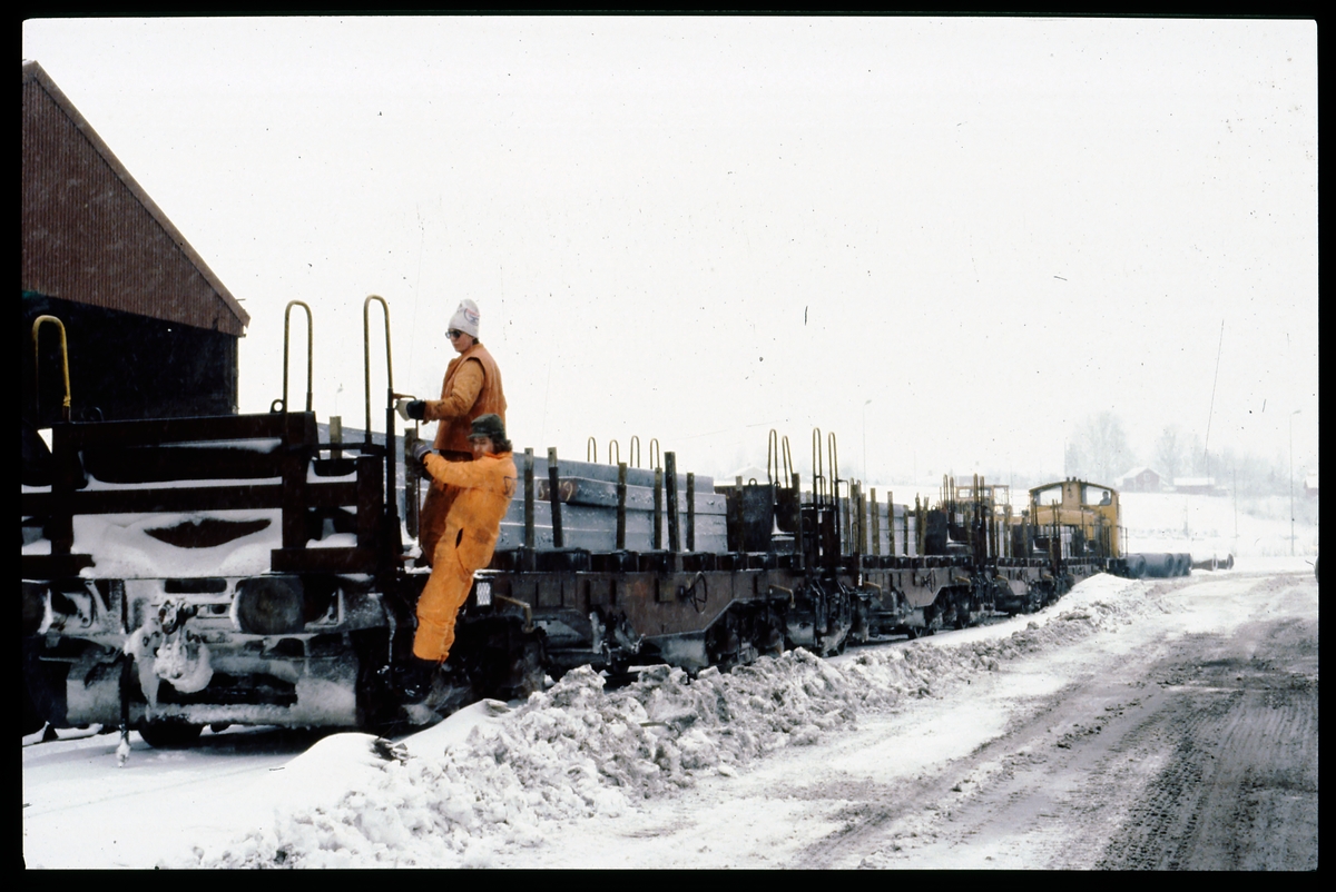 Fraktning av betongplattor på godståg.