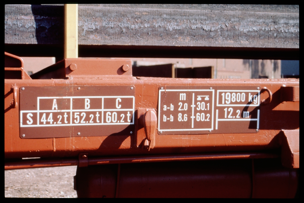 Detalj av märkning på Statens järnvägar SJ stålämnesvagn.