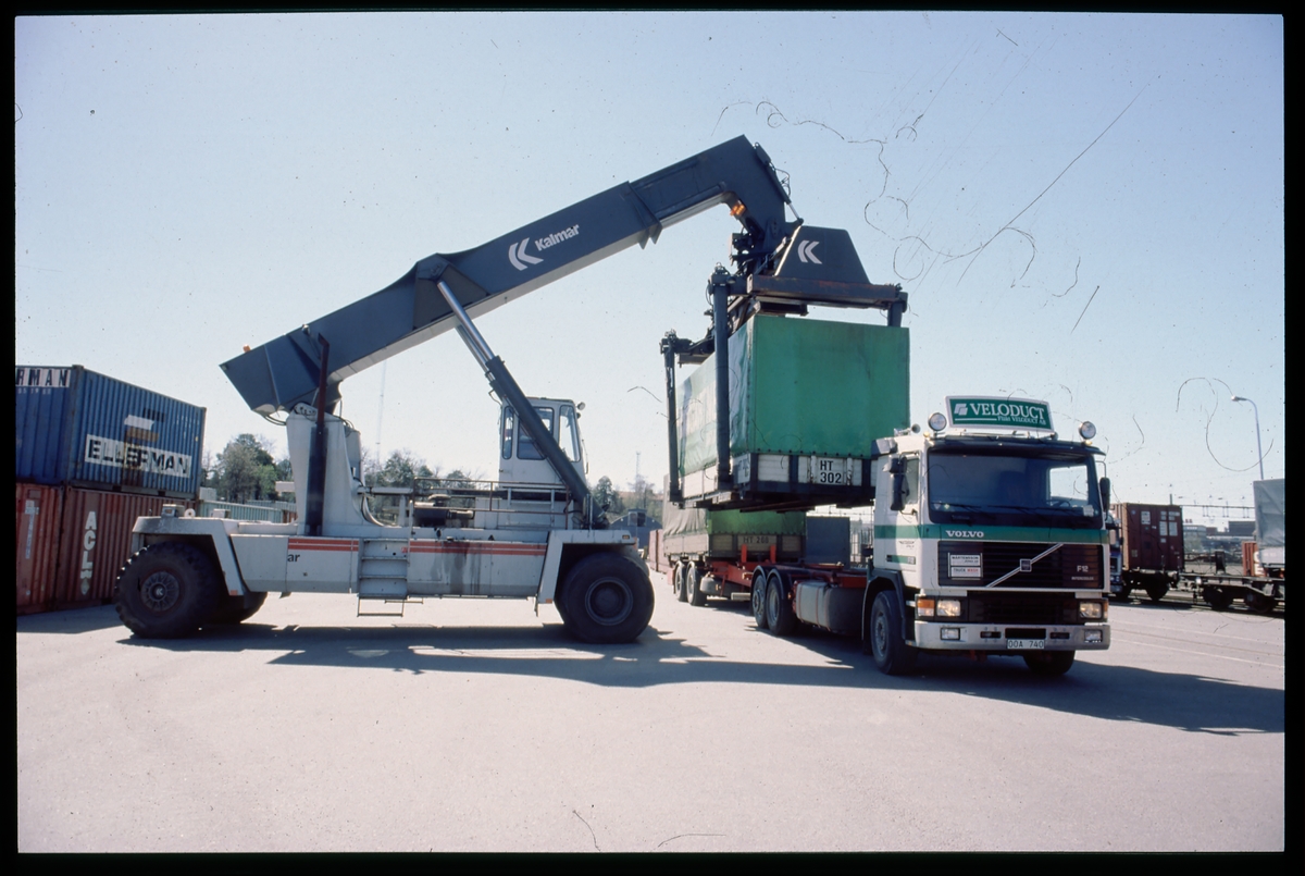 Lastning av container på lastbil.