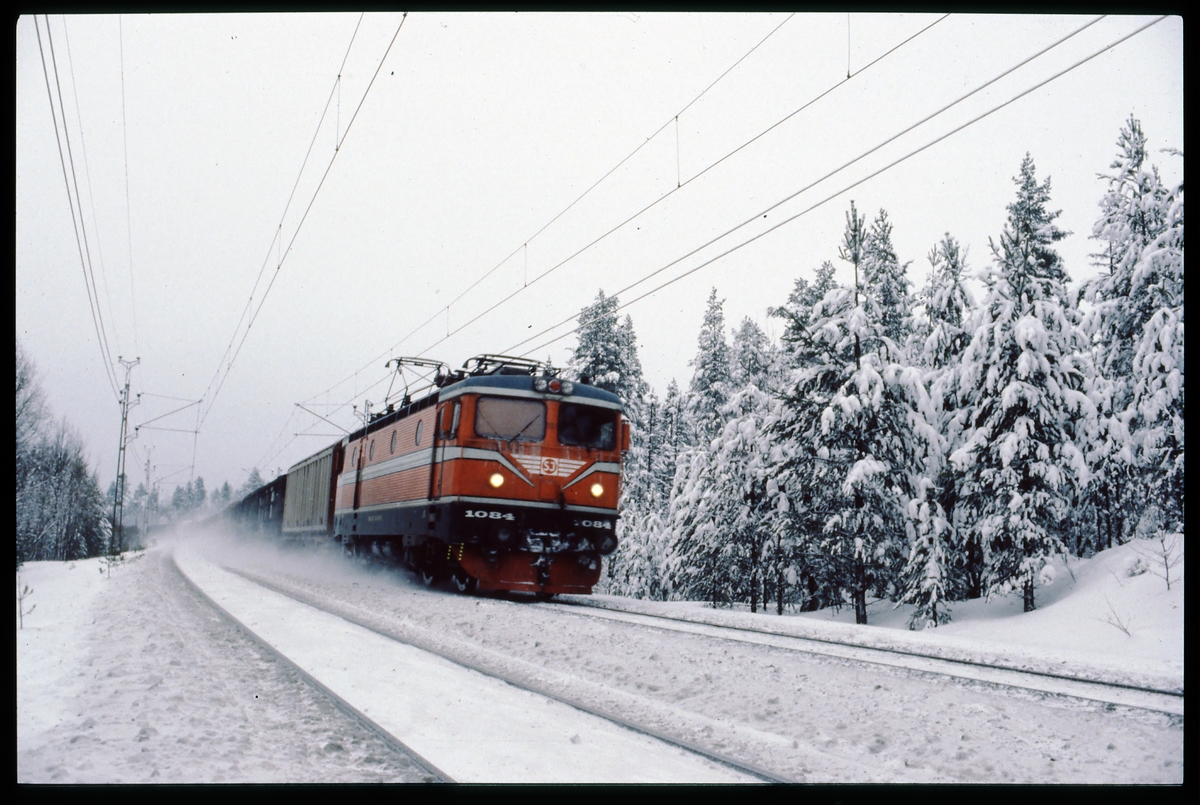 Statens Järnvägar, SJ Rc2 1084 med godsvagnar.