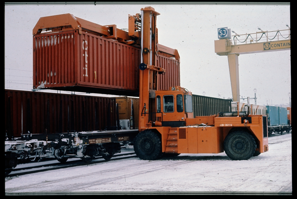 Lastning med containertruck GD-3219. Statens Järnvägar SJ Slps 20-74-432 7 035-1.