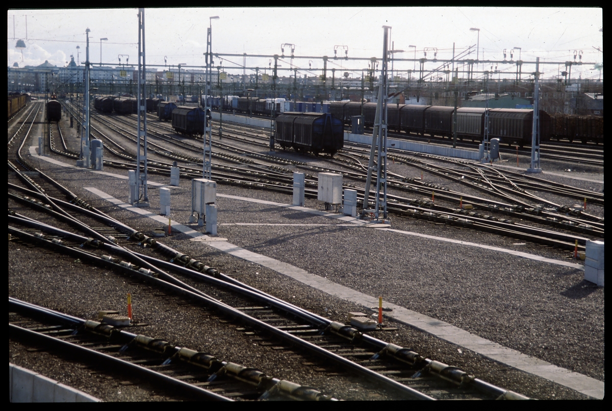 Bangård. Notera spiralbromsarna längs spåren.
