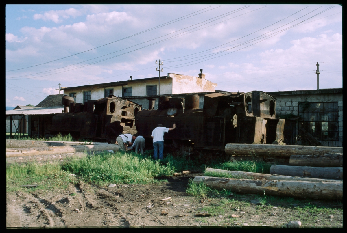 Avställt smalspårigt ånglok vid Orăștie, Rumänien