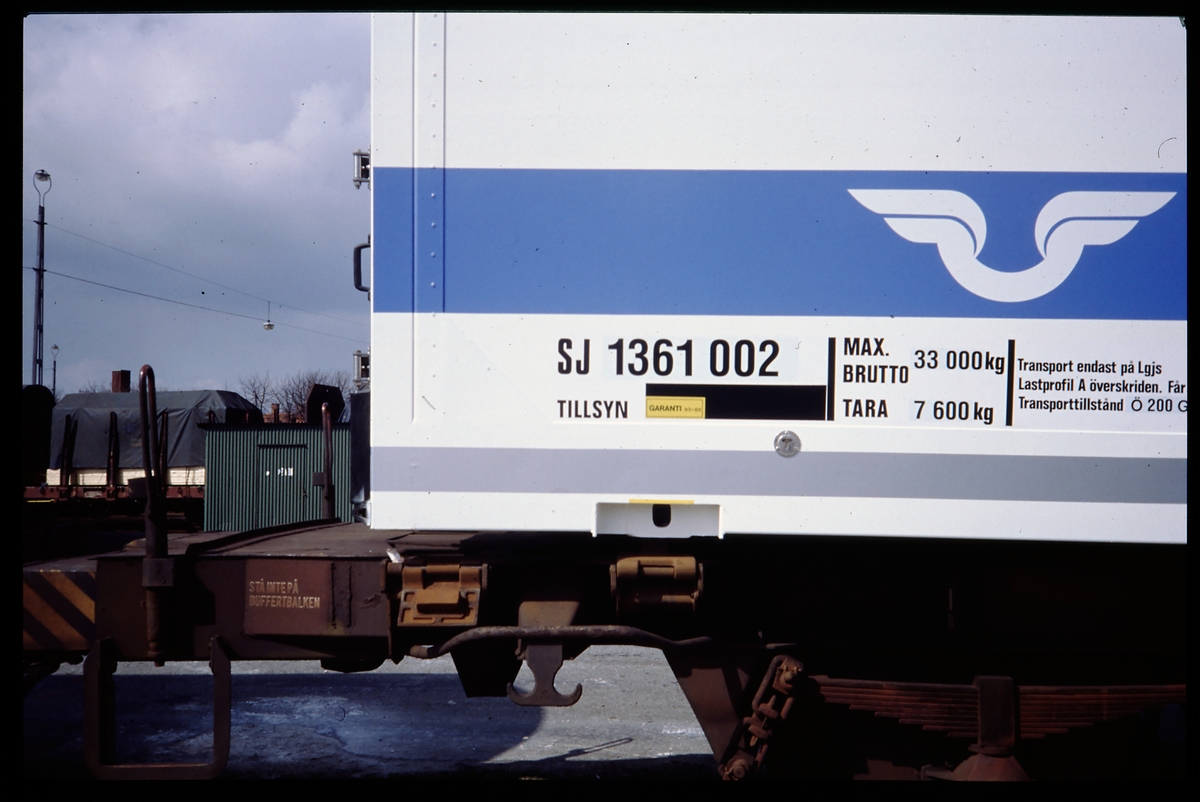 Märkning av statens Järnvägar SJ jumbocontainer 1361002.