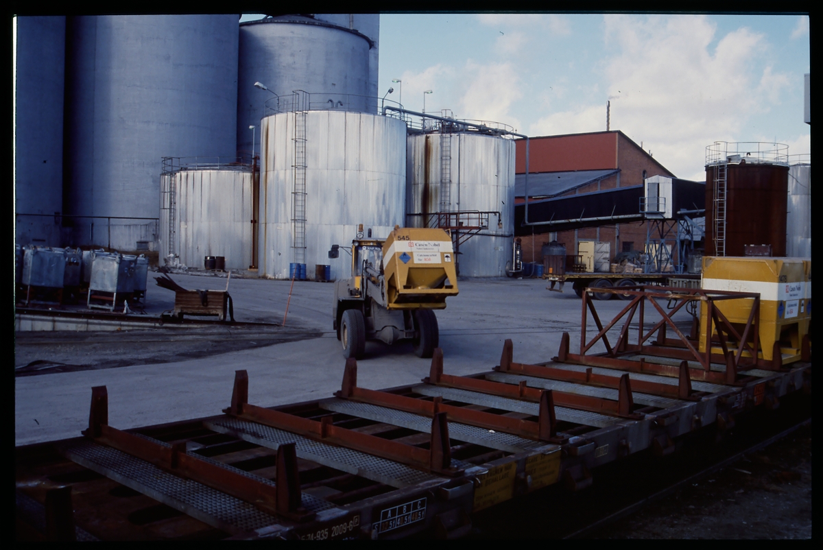 Lastning av Statens Järnvägar SJ Uakks med småbehållare från Casco Nobel.