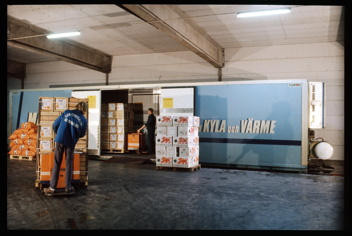 Lastning/lossning av gods till/från MAXI-LÅDAN med hjälp av pallyftare.