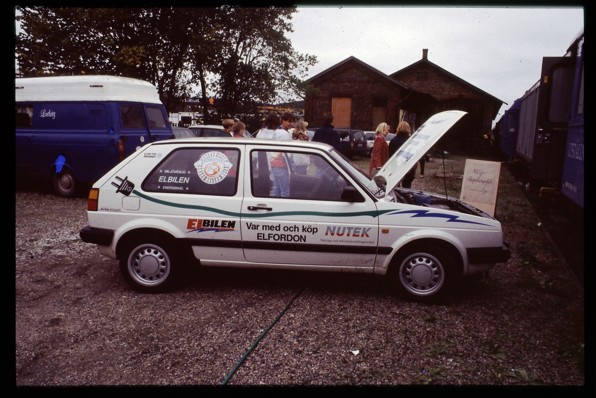 Volkswagen elbil. Nutek. Här i samband med utställning vid miljötåget Ekomotivet.