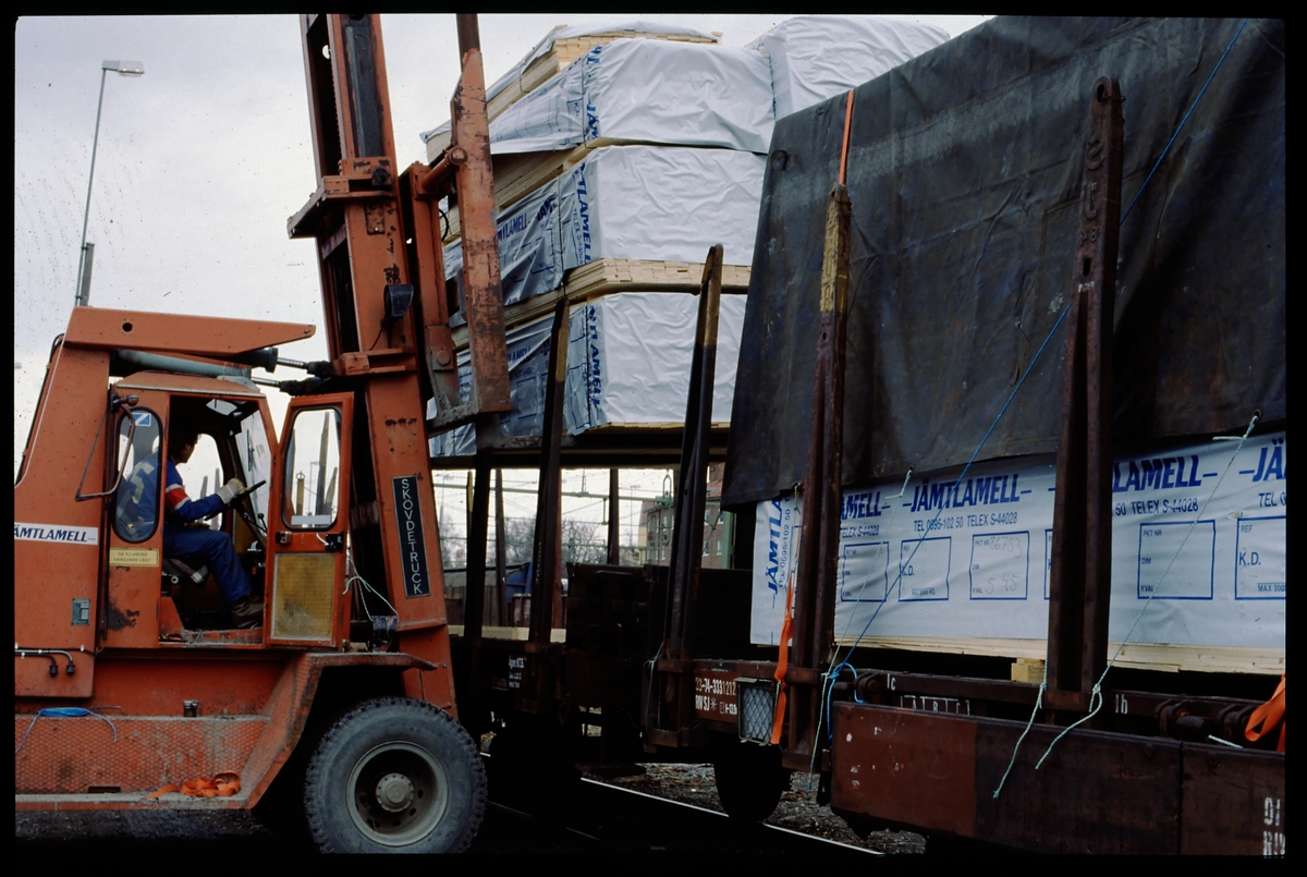 Lastning på en SJ stolpvagn.