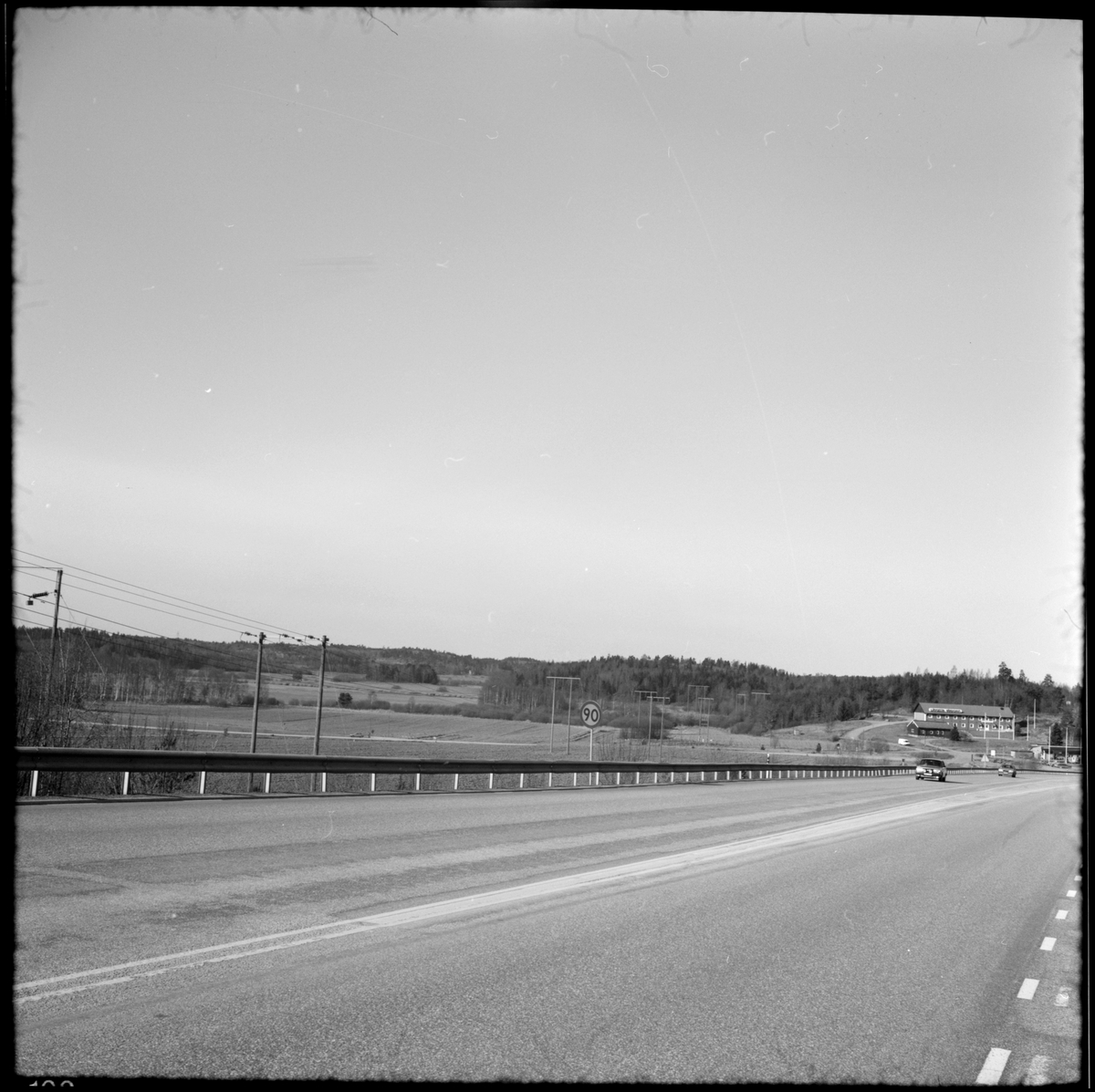 Till höger i bild ses Läggesta värdshus och bensinstation vid infarten till Läggesta.