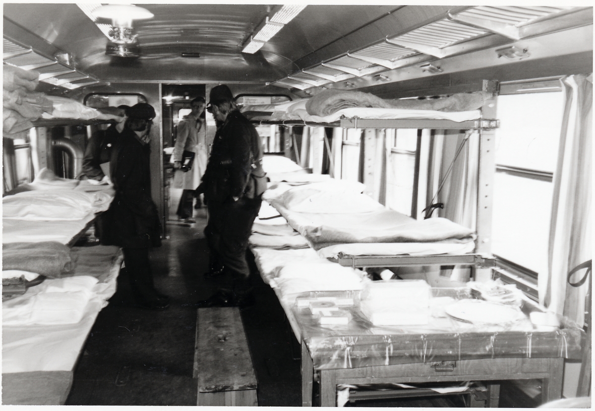 Militär järnvägstjänst. Interiör vagn: sjukbritsar.