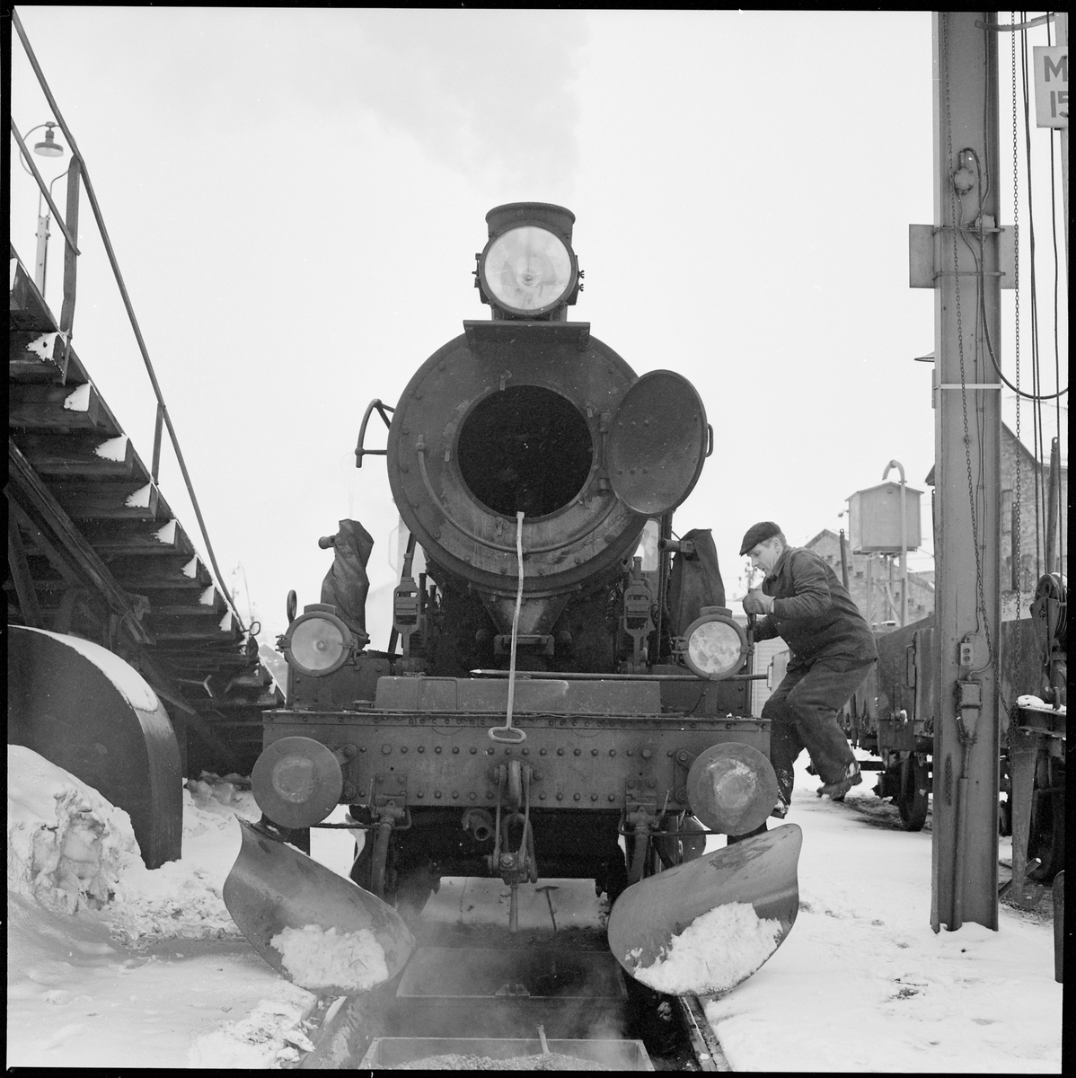 Statens Järnvägar, SJ E2 954. Sotning av ånglok.